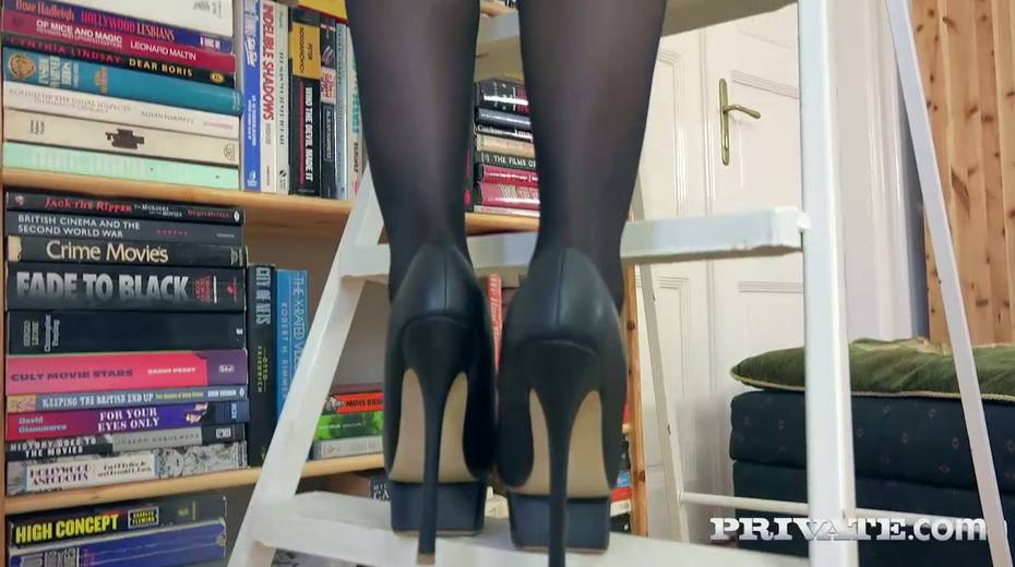 Leggy secretary in stockings Nesty gets her pussy licked and fucked right on the stepladder