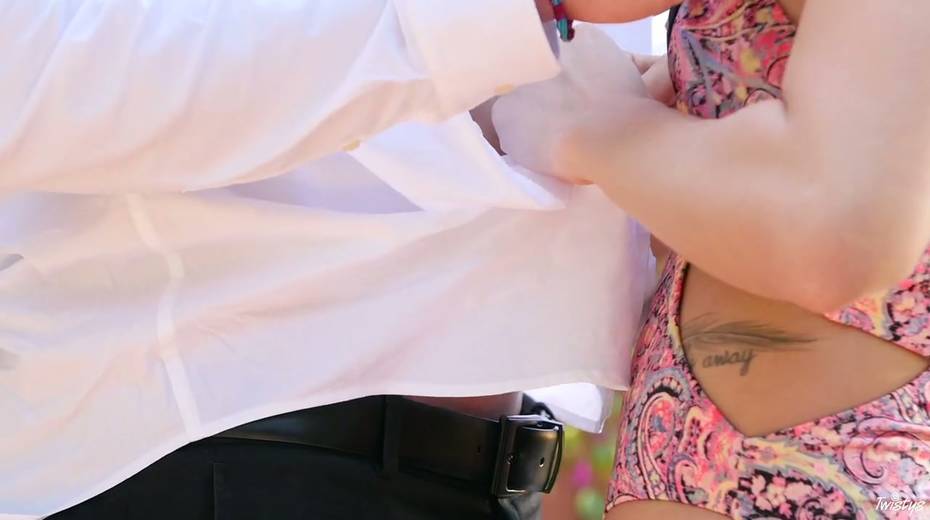 Glamours and oversexed babe Ariana Marie is fucked by waiter outdoor
