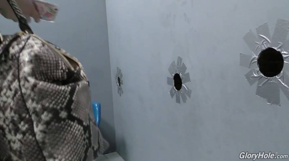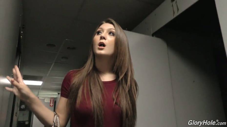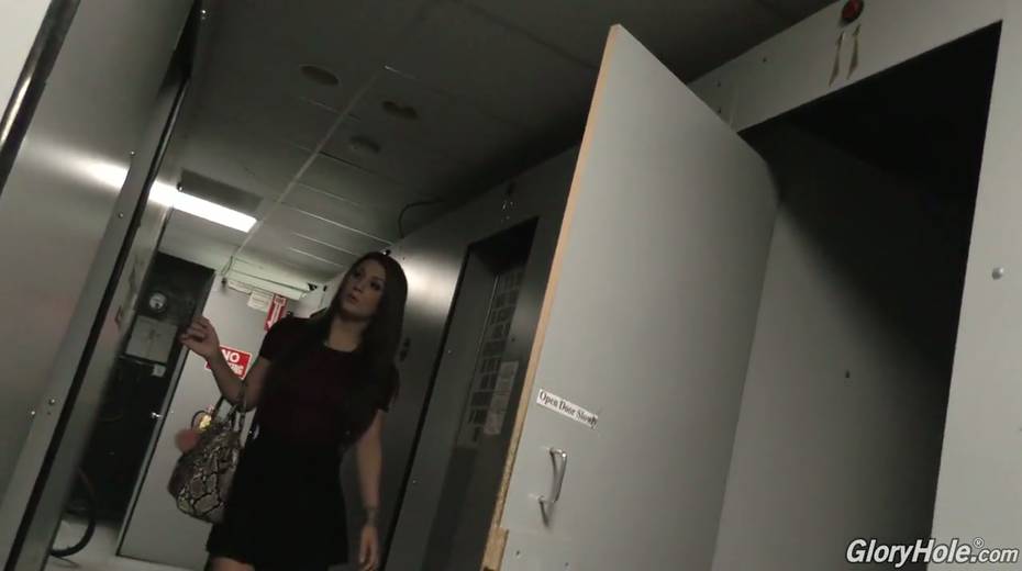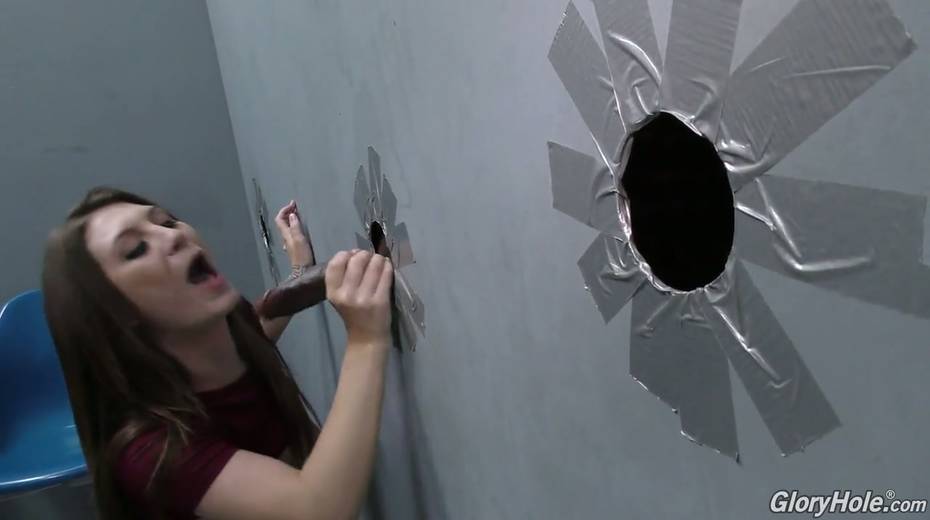 Sinful brunette Jojo Kiss is sucking and fucking two black dicks in the glory hole room