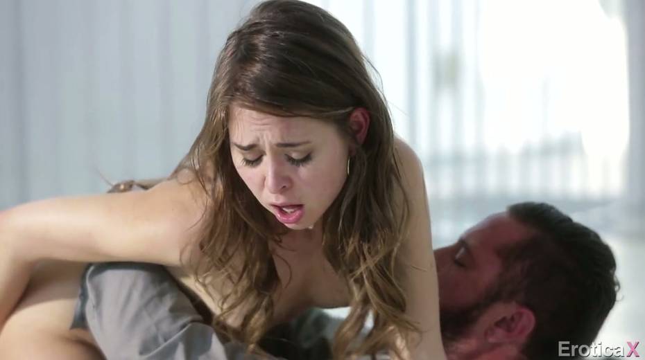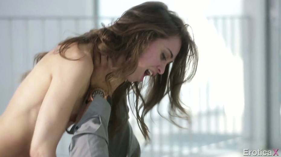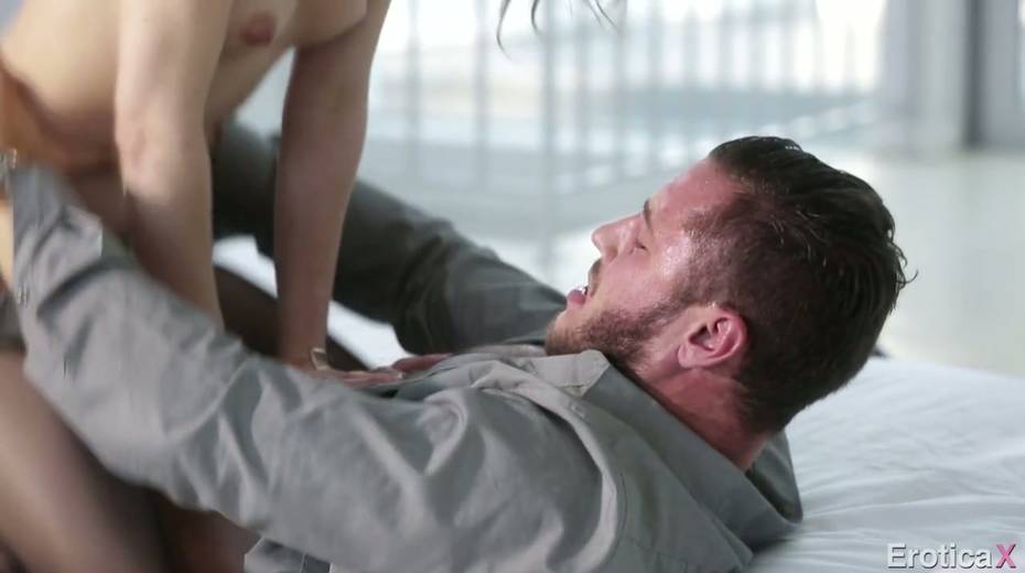 Petite girlfriend Riley Reid is riding big dick of raunchy dude Danny Mountain