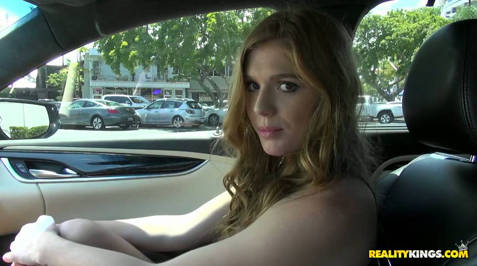 Picked up red haired chick Olivia Lee is fucked by stranger after showing her ass in the car
