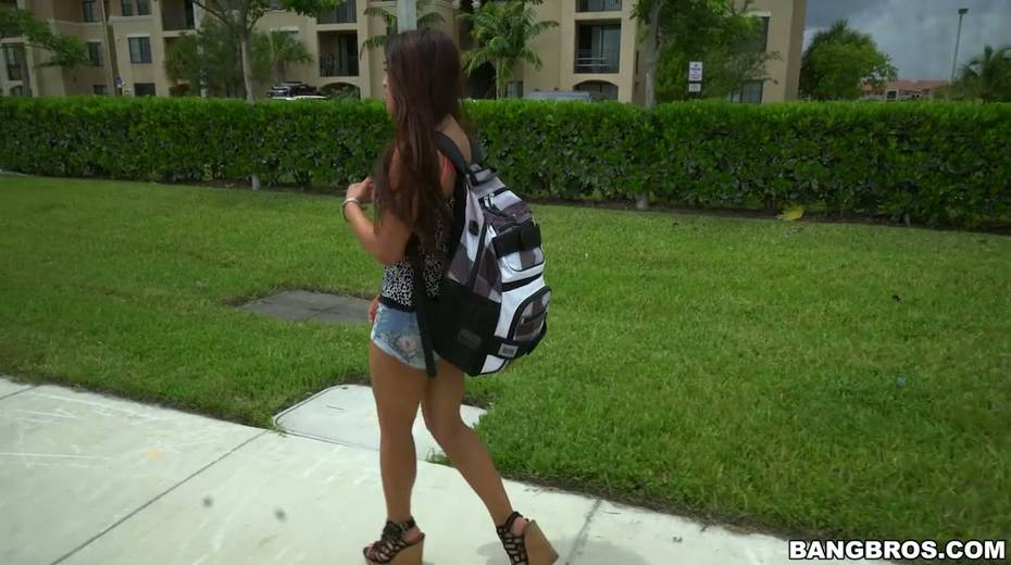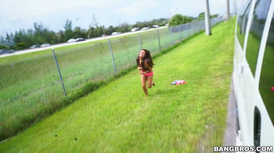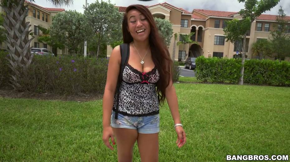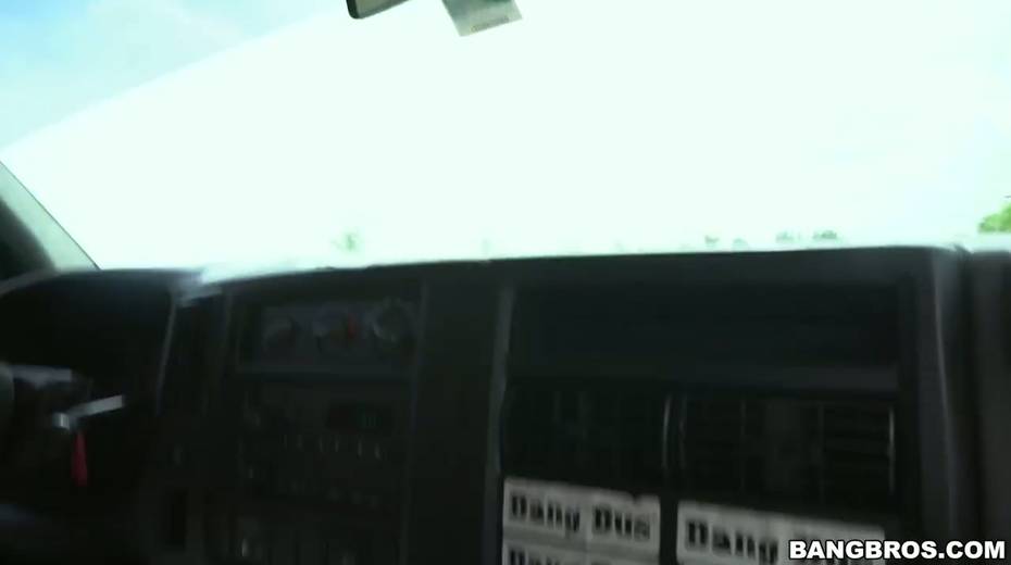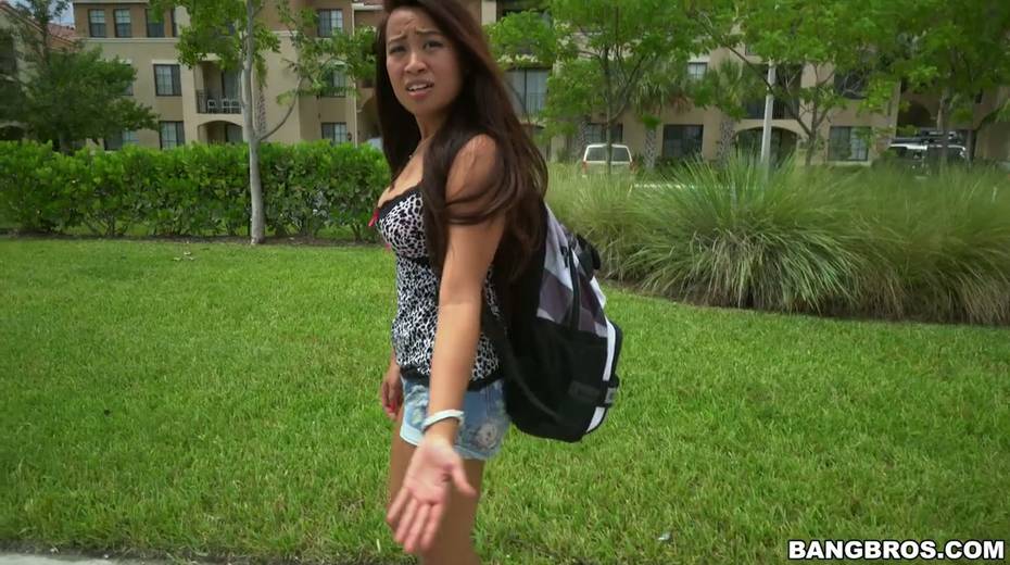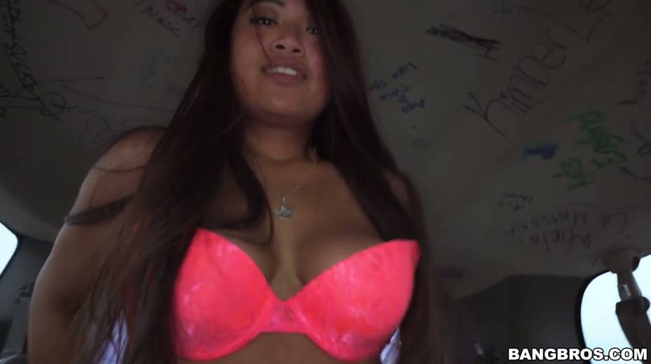 Two dudes pick up Asian chick Sasha Yamagucci and fuck her in the van