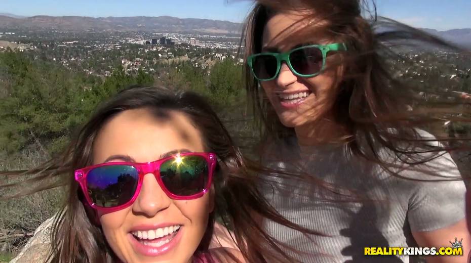 Seductive bitch Abigail Mac fucks her girlfriend in the car