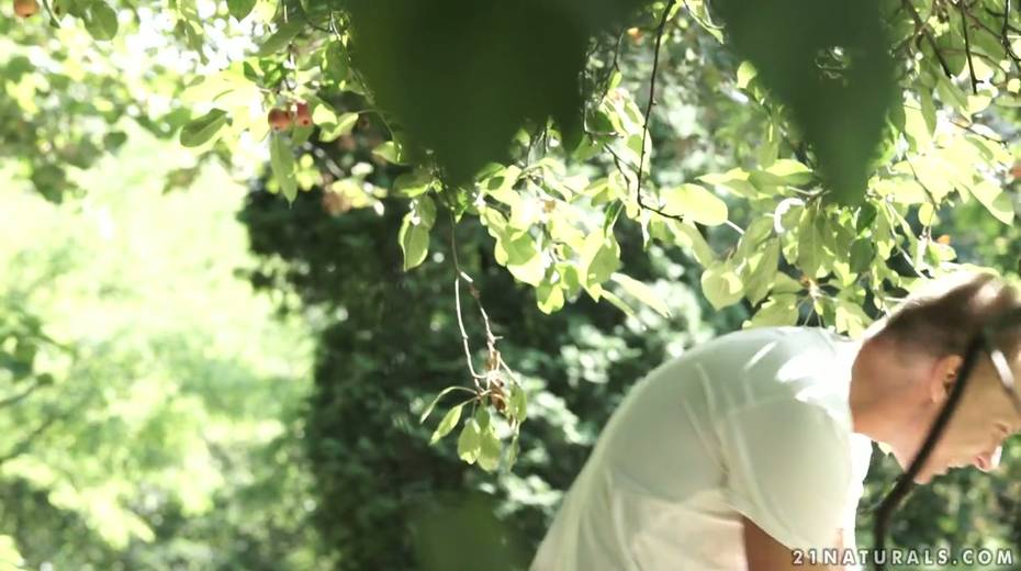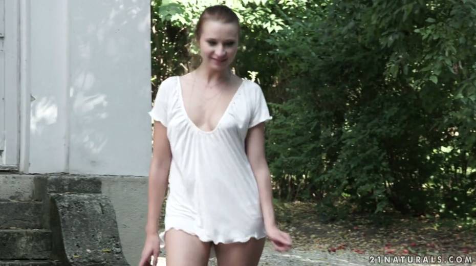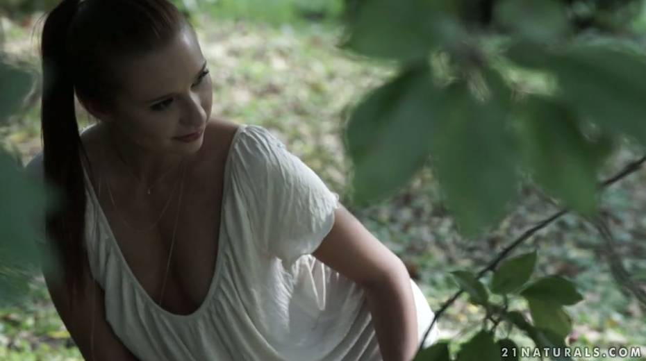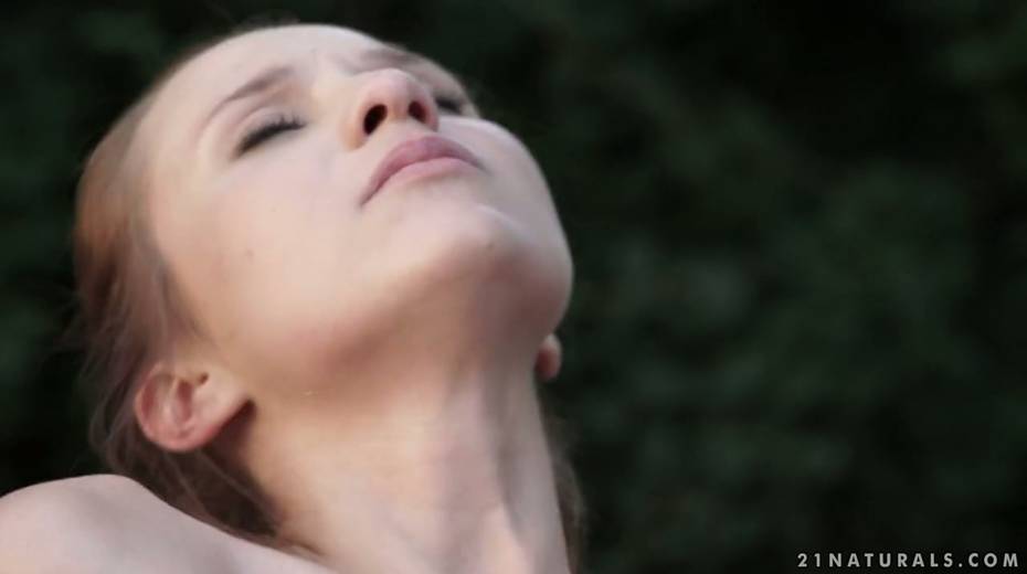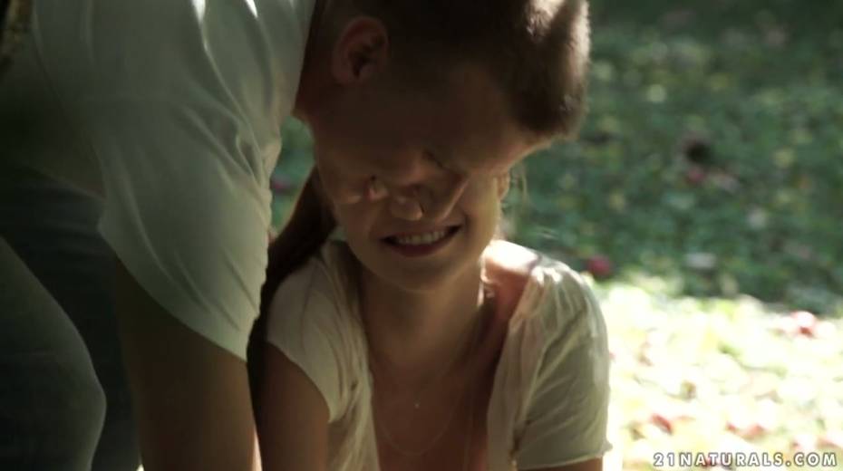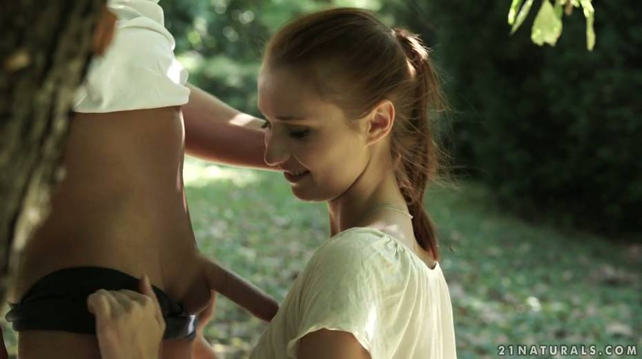 Romantic anal sex with pretty petite red haired babe in the garden