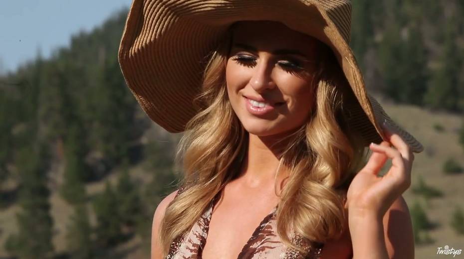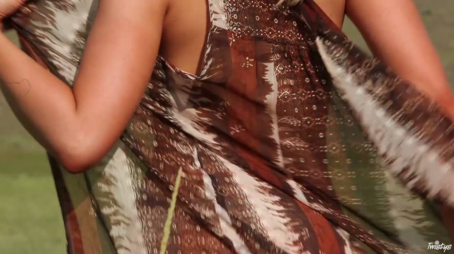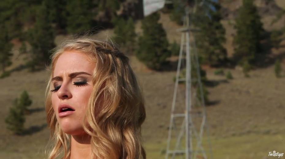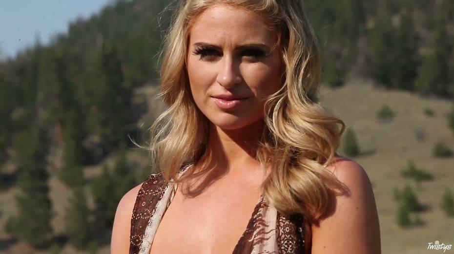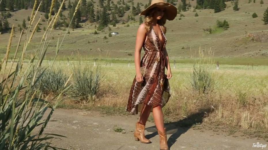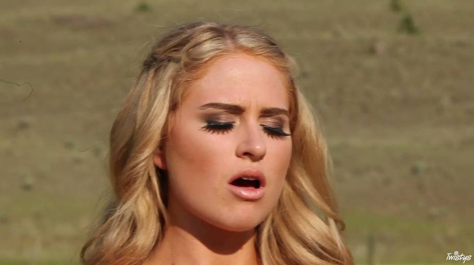 Beautiful babe Maya Rae is masturbating her yummy pussy in the filed