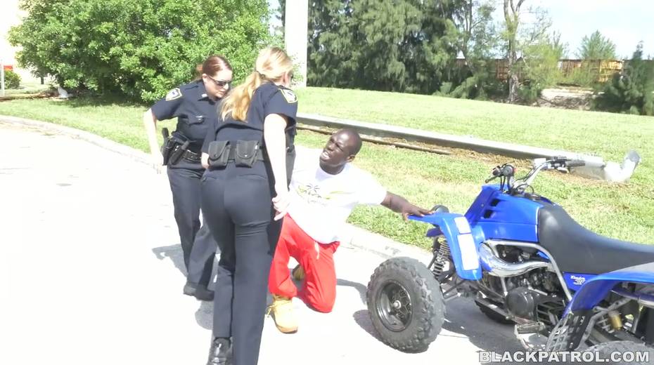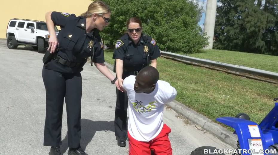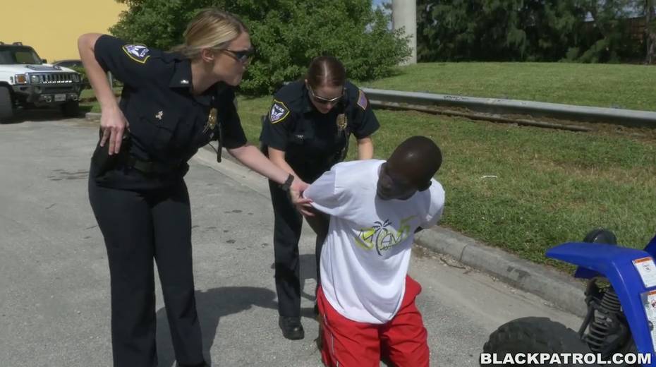 Sex-hungry police women fuck one arrested BBC and make him lick pussies