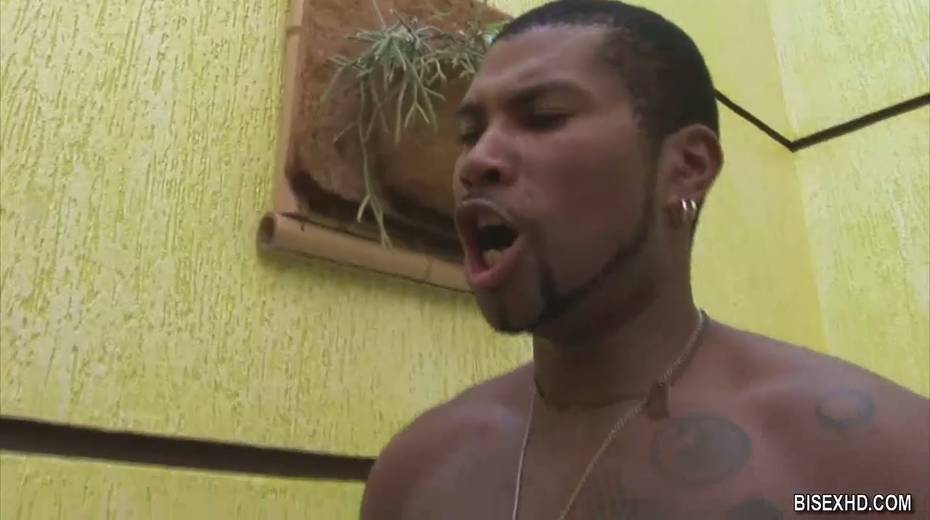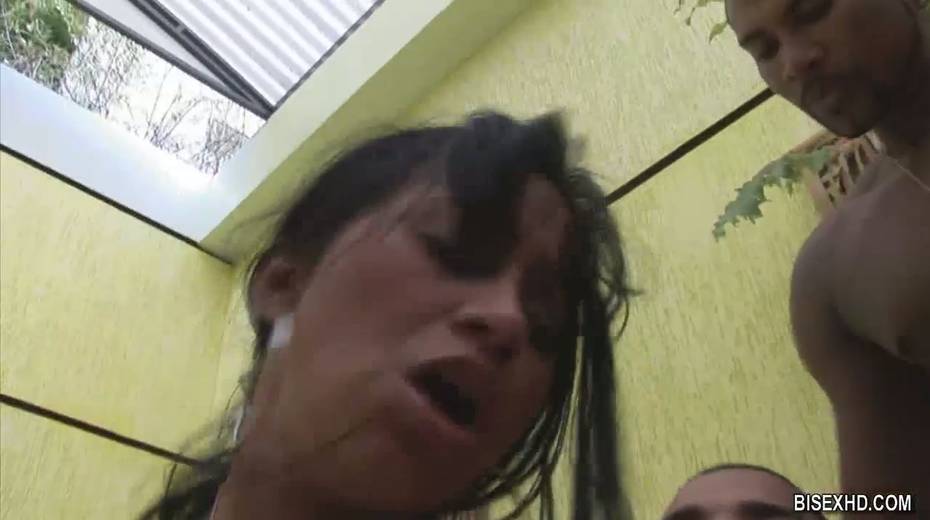 Ebony hoochie Nicoly is having dirty sex with two bisexual dudes