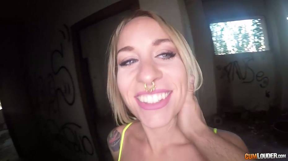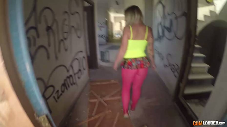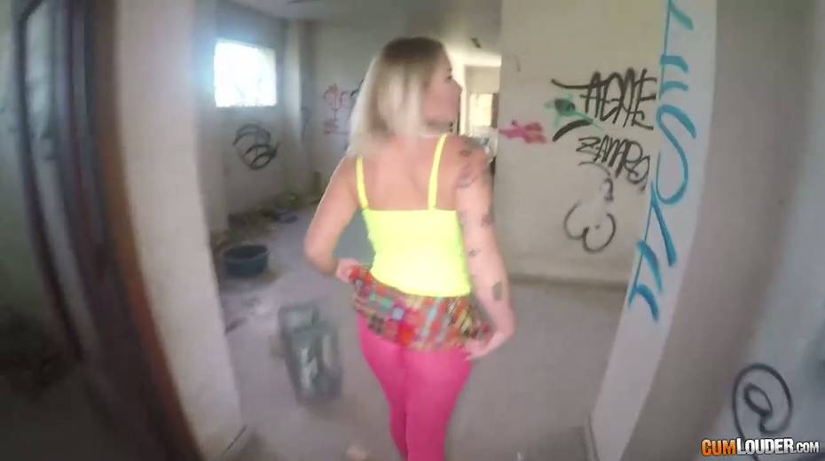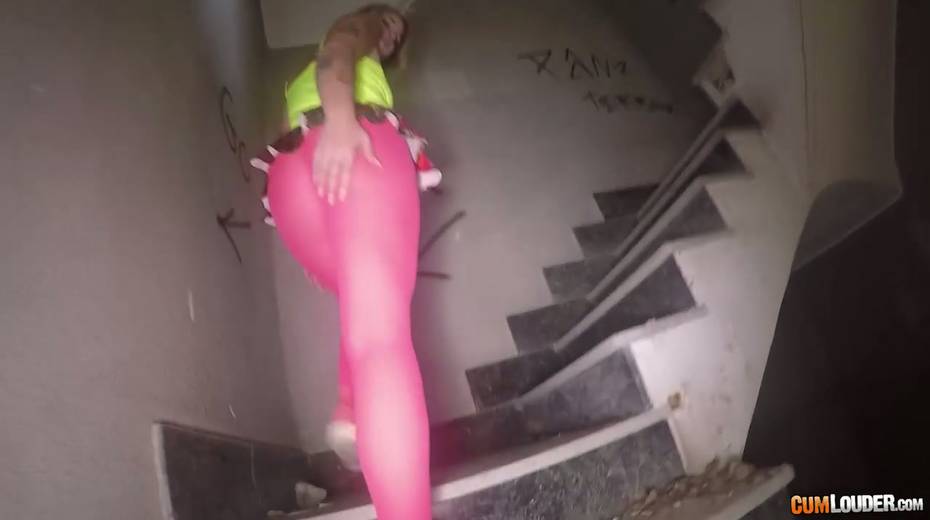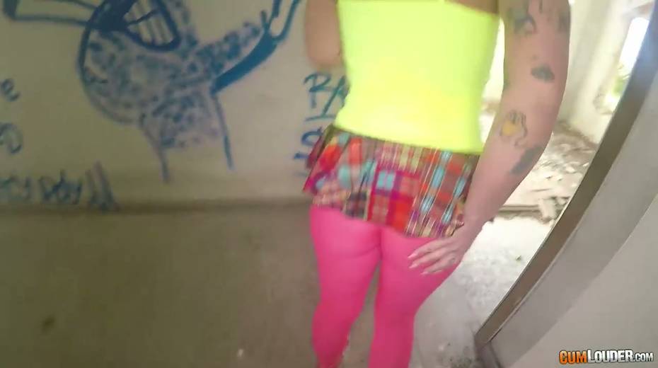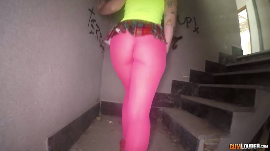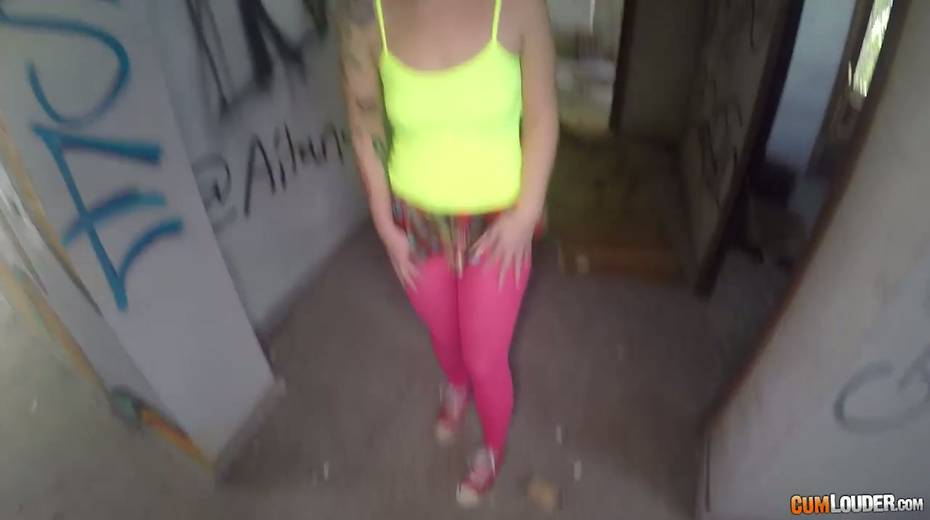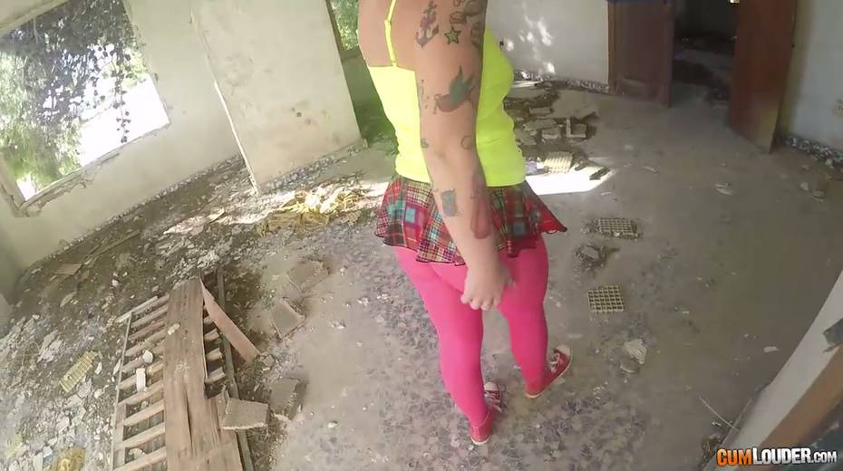 Sassy tattooed bitch in yoga pants Violeta Cruz gives her head in an abandoned house