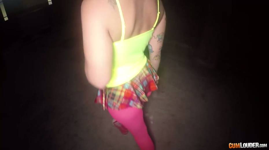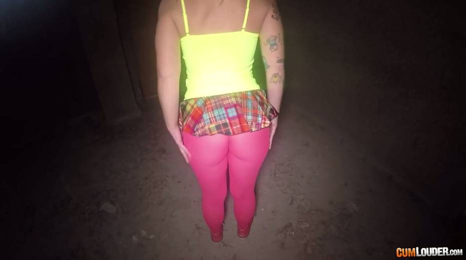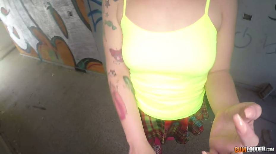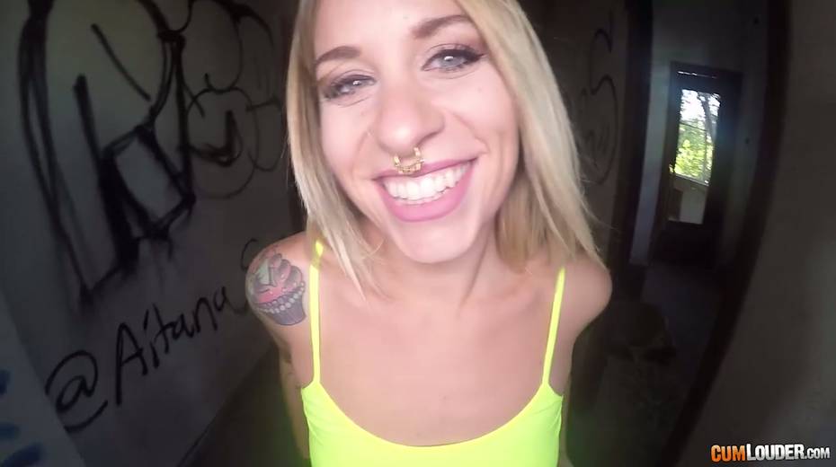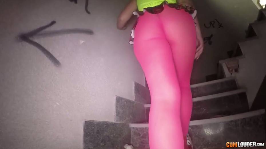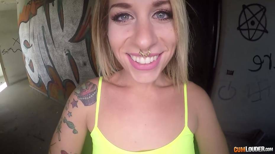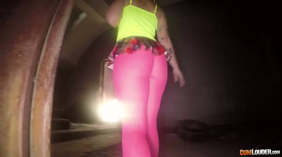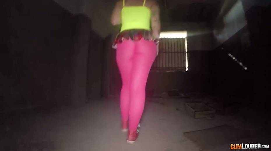 Sassy tattooed bitch in yoga pants Violeta Cruz gives her head in an abandoned house
