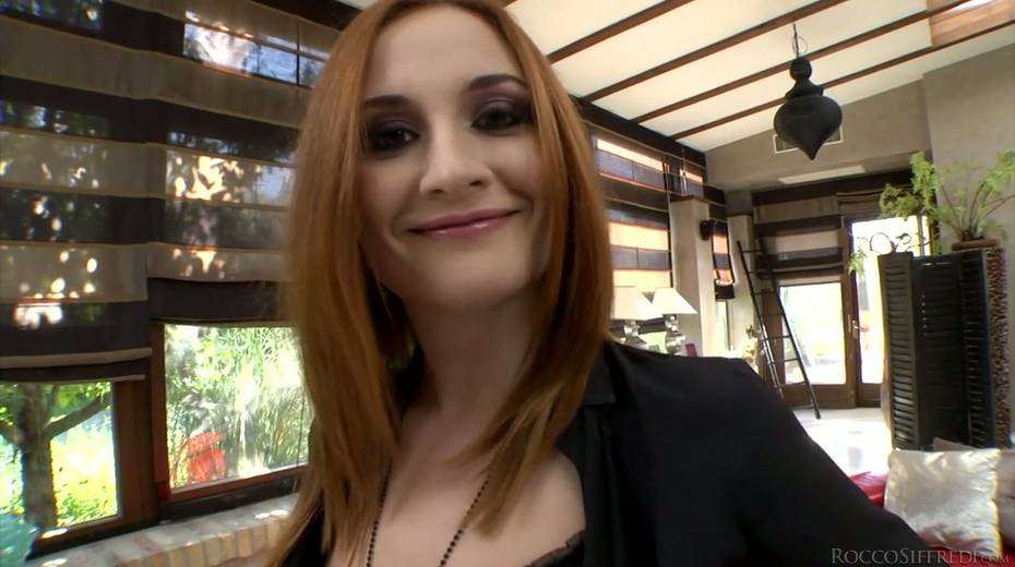 Naughty milf Aria Logan shows her anal hole and nice red haired pussy