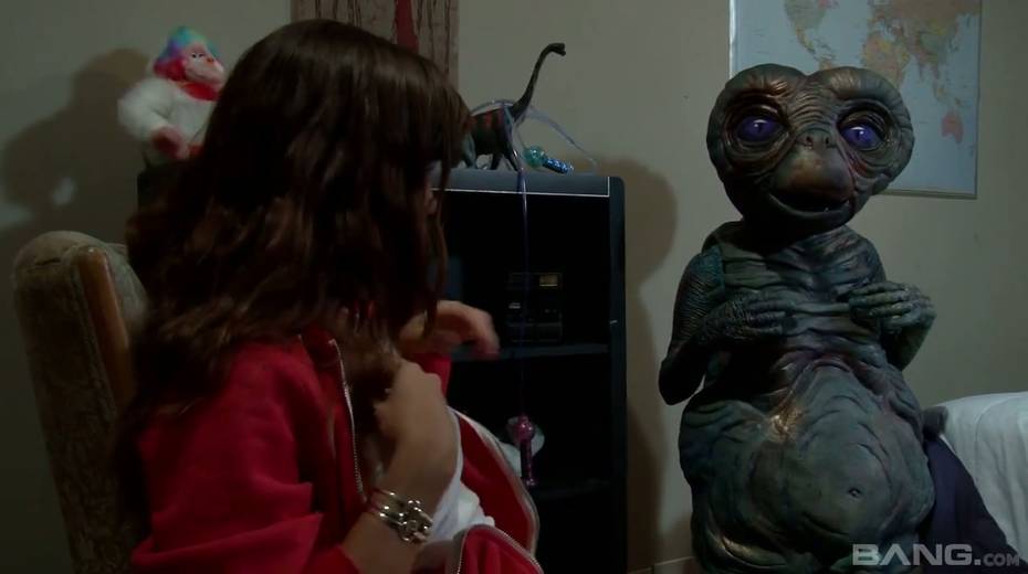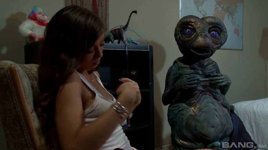 Pretty girl Alexis Capri teaches Alian how to masturbate on the Earth