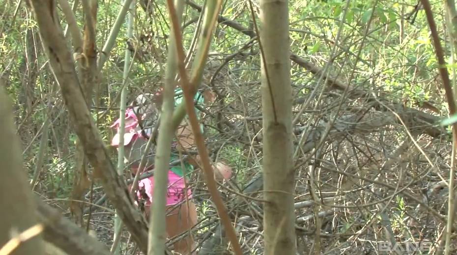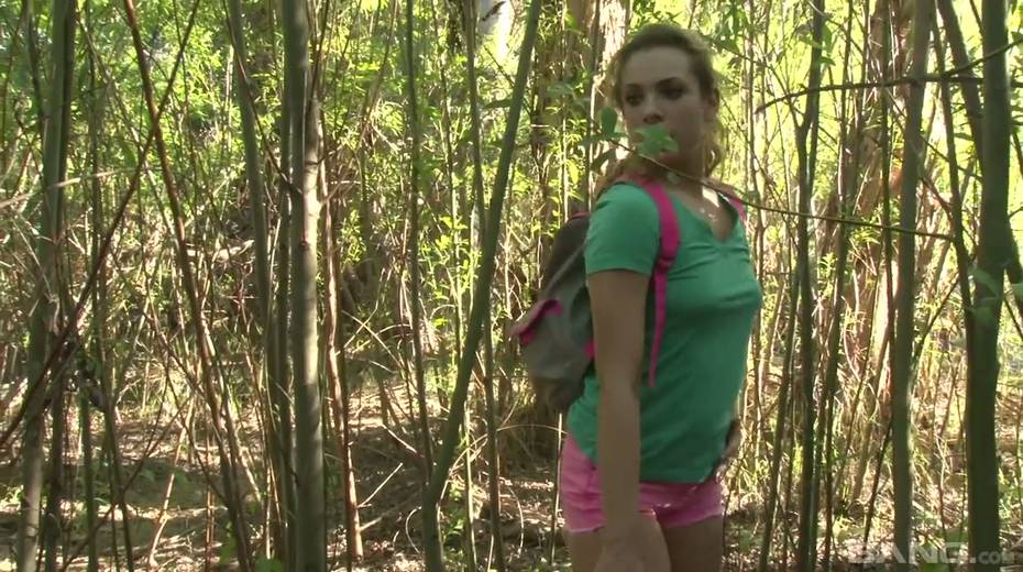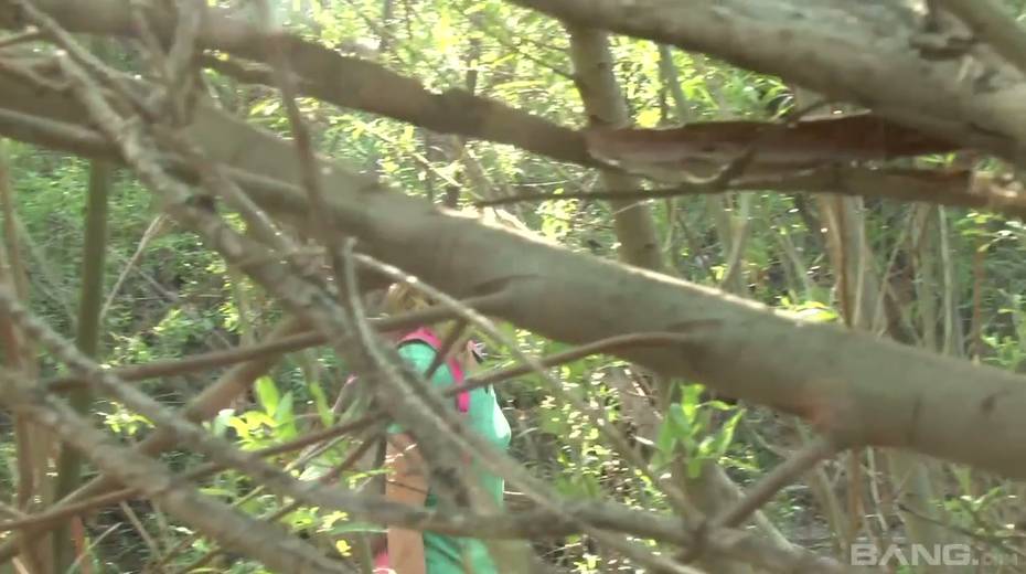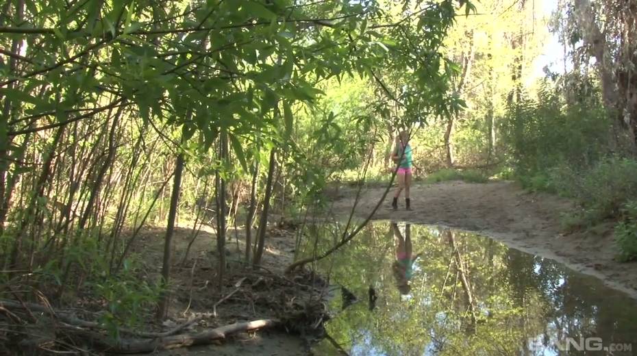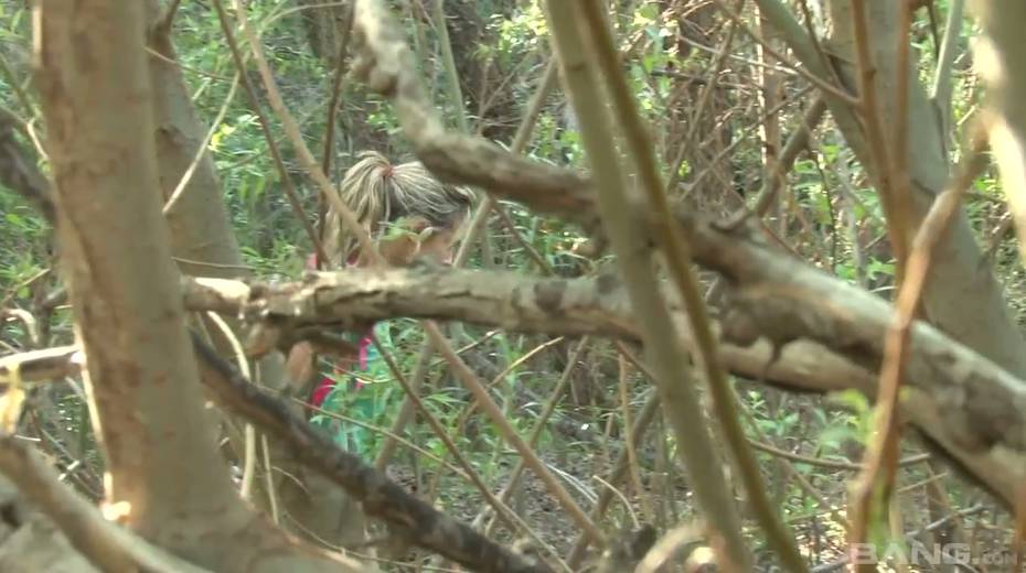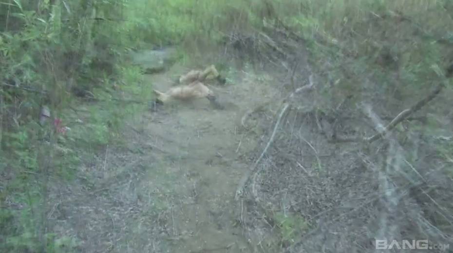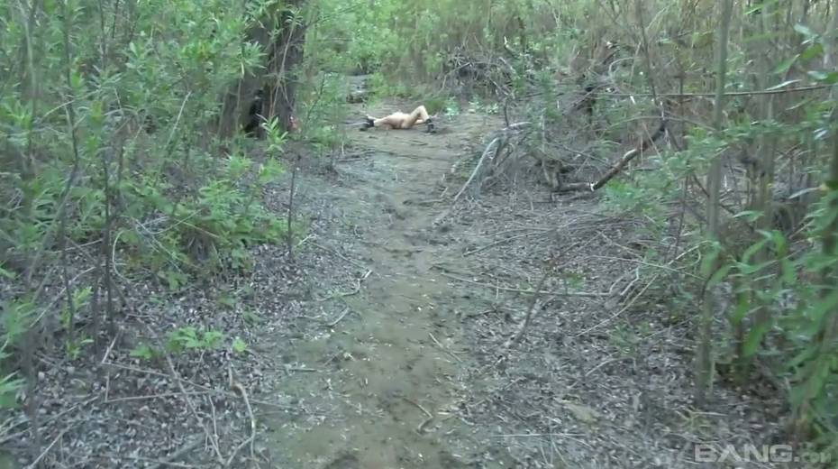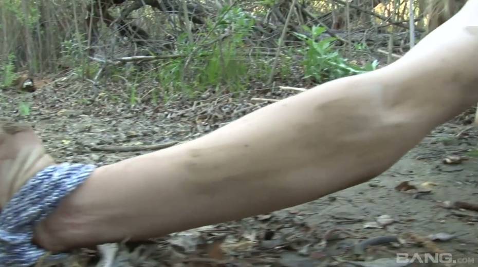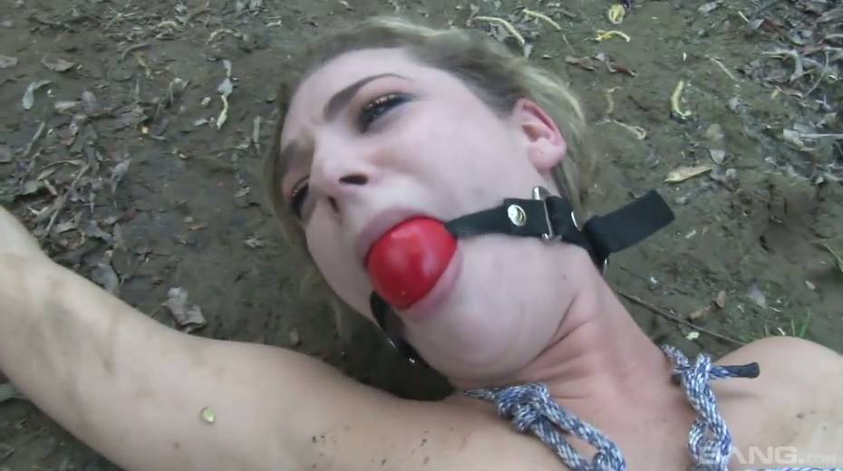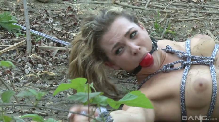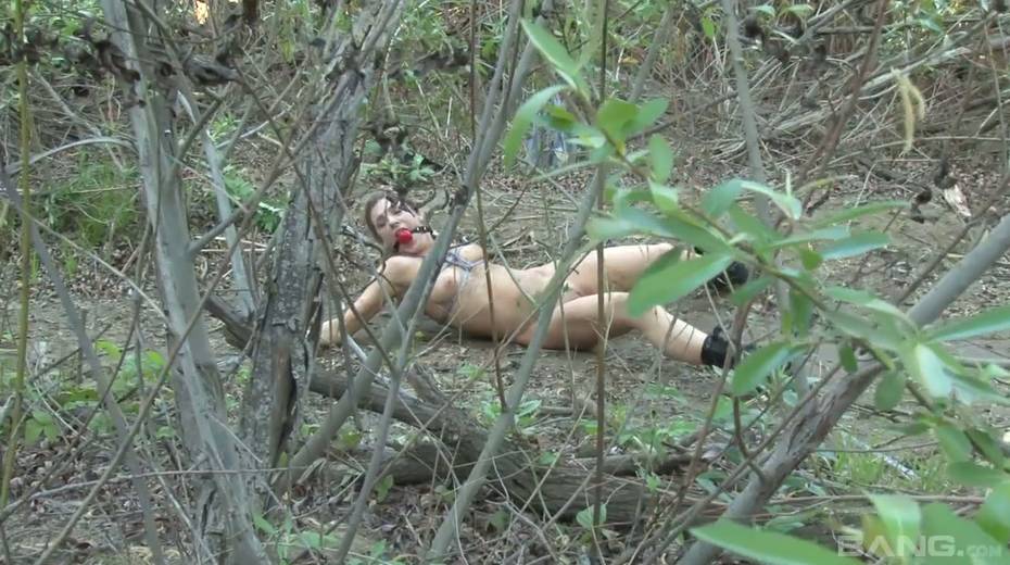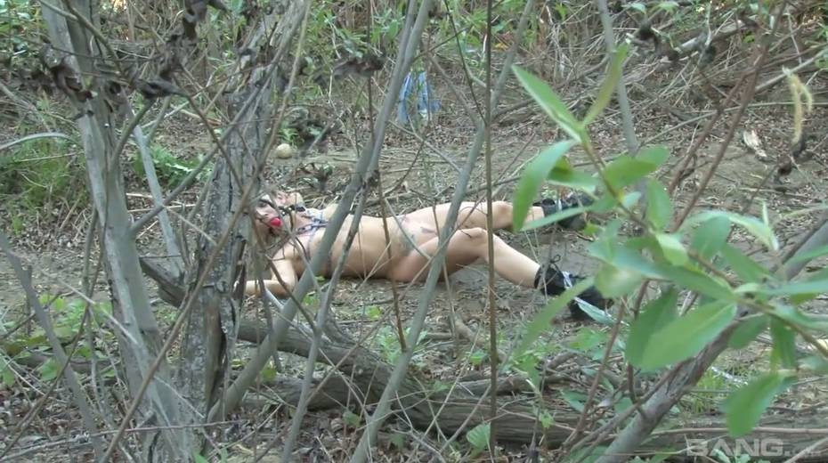 Tied up chick Bailey Blue gets her pussy fucked and jizzed in the forest
