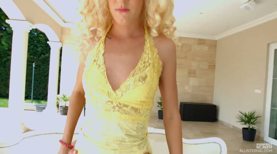 Skinny blonde Monique impales her anal hole on hard and meaty dick