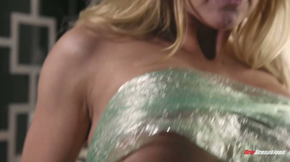 Sexy busty chick Christie Stevens is wrapped in plastic wrap