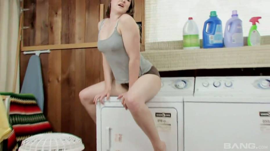 Sex-hungry girl Sheila is masturbating her pussy in the laundry room