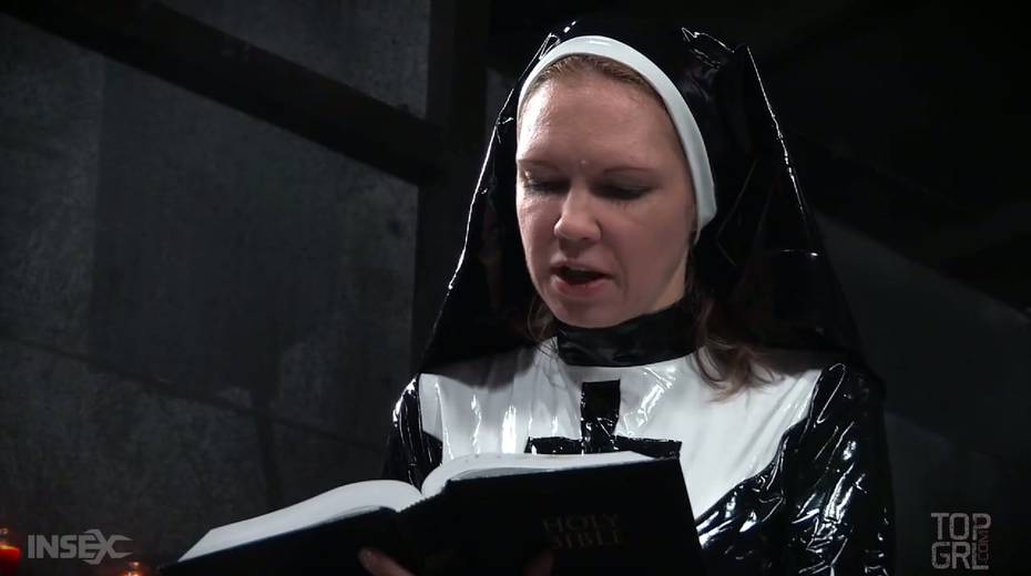 Nun wearing strapon fucks sinful red haired chick Savannah Fox