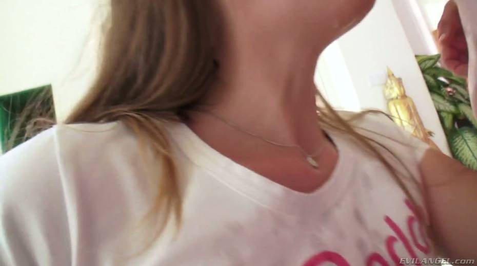 Yummy bitch Zoey Laine shows her tits and gives yum-yum blowjob
