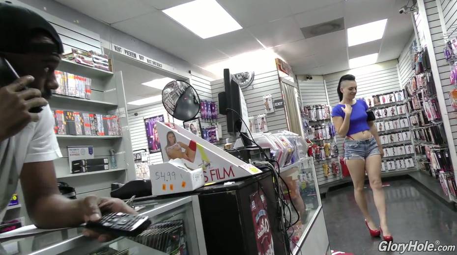Half shaved head Rachael Madori enjoys having fun in the glory hole room