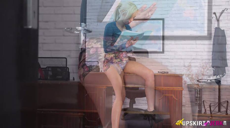Naughty secretary in short skirt Fi Fi shows her panties