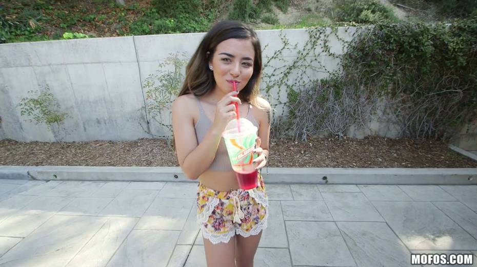 Pretty young chick Amina Allure sucks hard dong and gets rammed doggy style