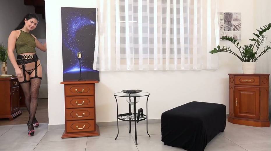 Slutty chick in stockings pisses several times during hot masturbation