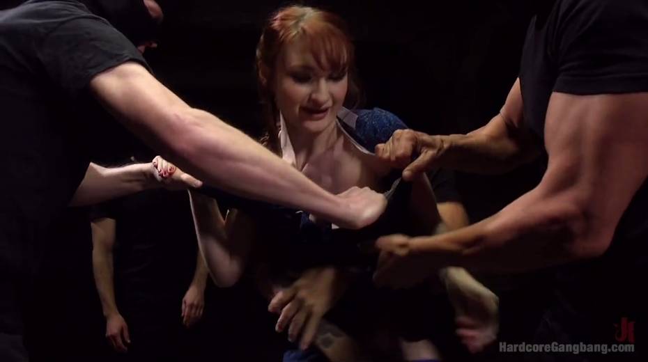 Hardcore gangbang for skinny red haired bitch Violet Monroe