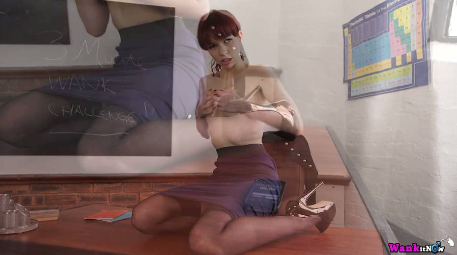 Whorish teacher Eva is stripping right on the table