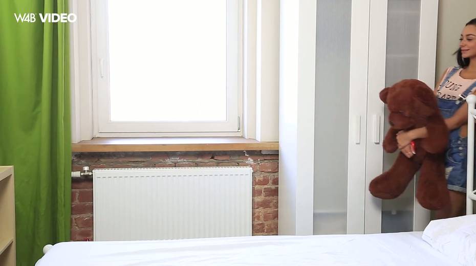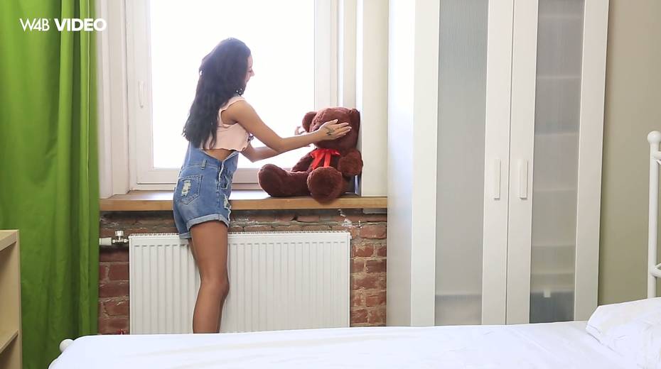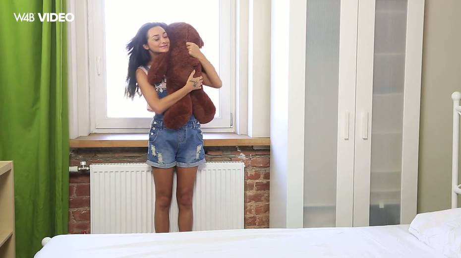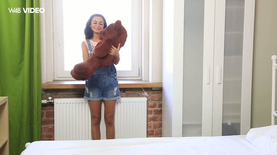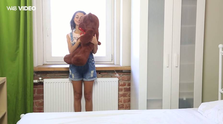 Hot blooded teen Inga is playing with her pussy and teddy bear