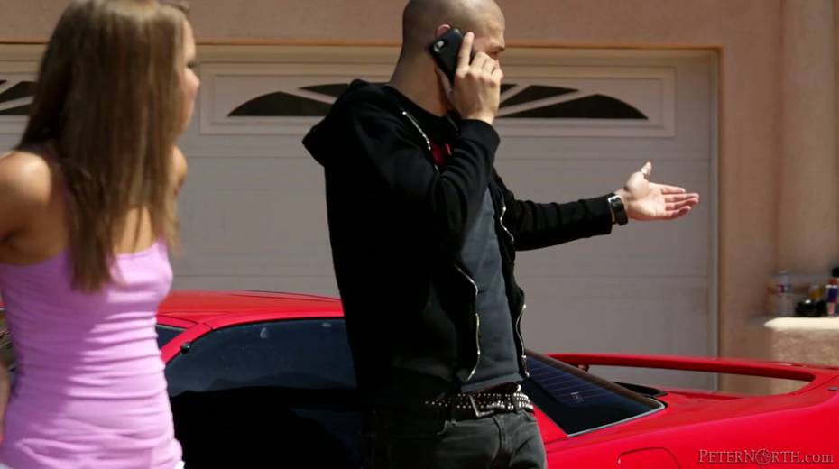 Slutty nextdoor chick Liza Rowe gives blowjob to one dude outdoor and get her pussy rammed hard