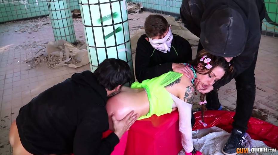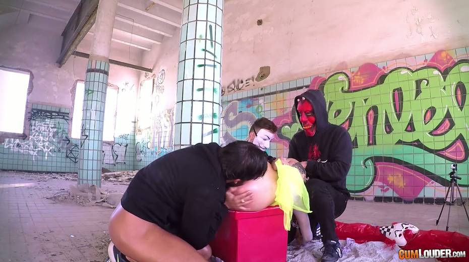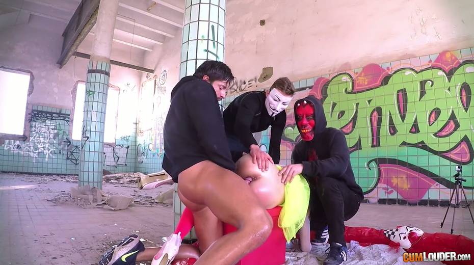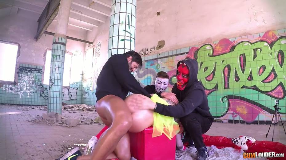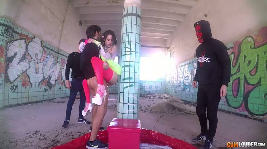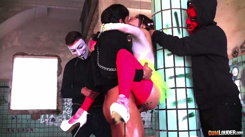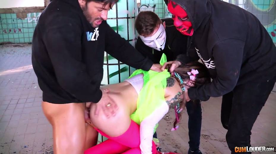 Beautiful babe Alexa Nasha is fucked by several dudes in masks