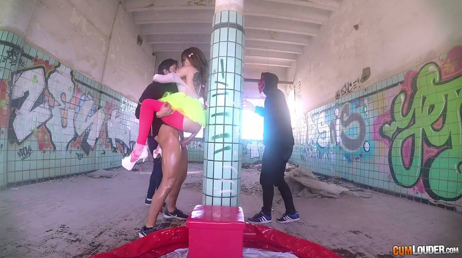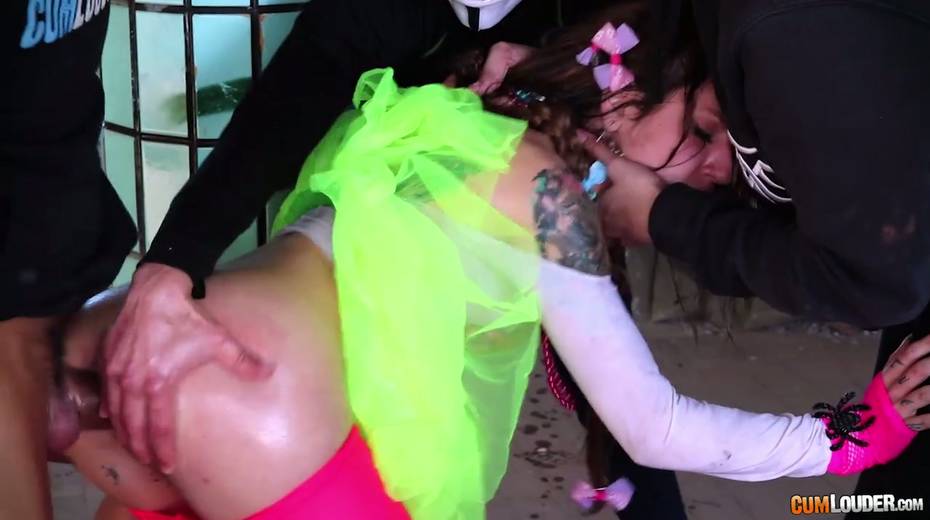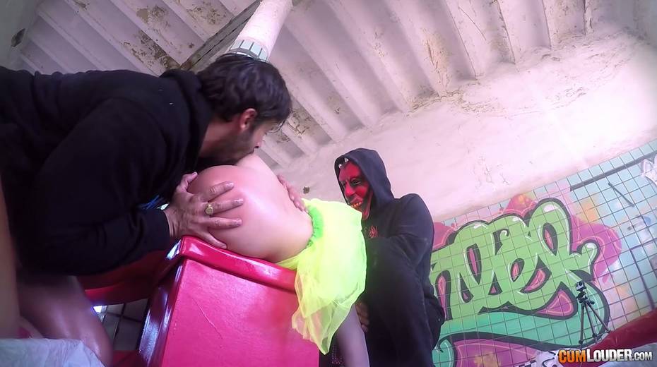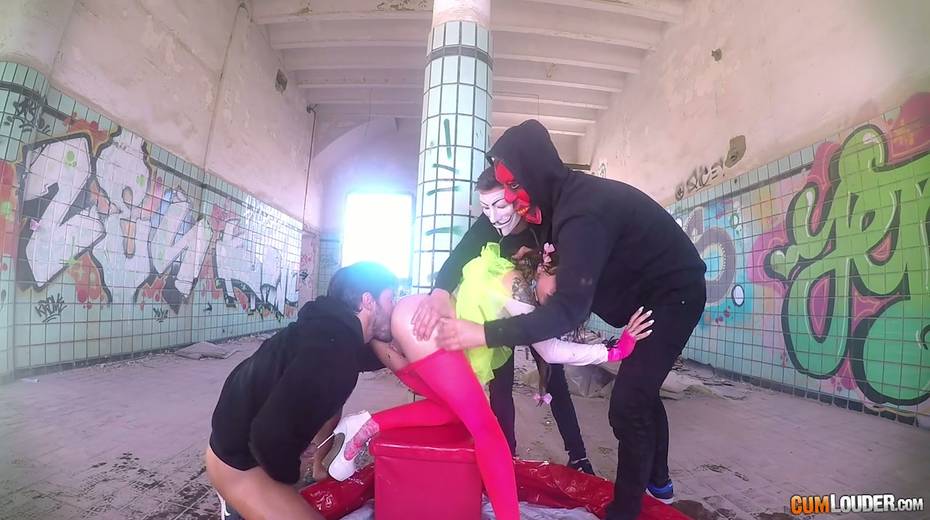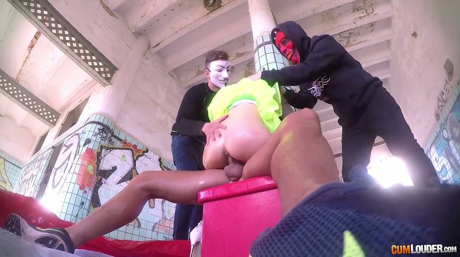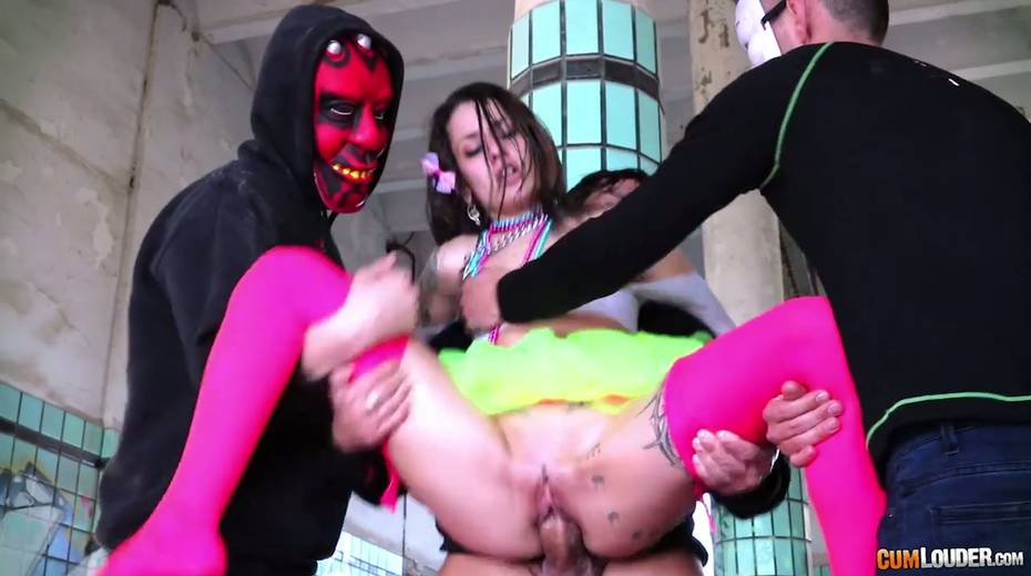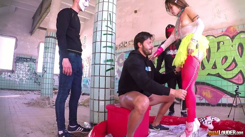 Beautiful babe Alexa Nasha is fucked by several dudes in masks
