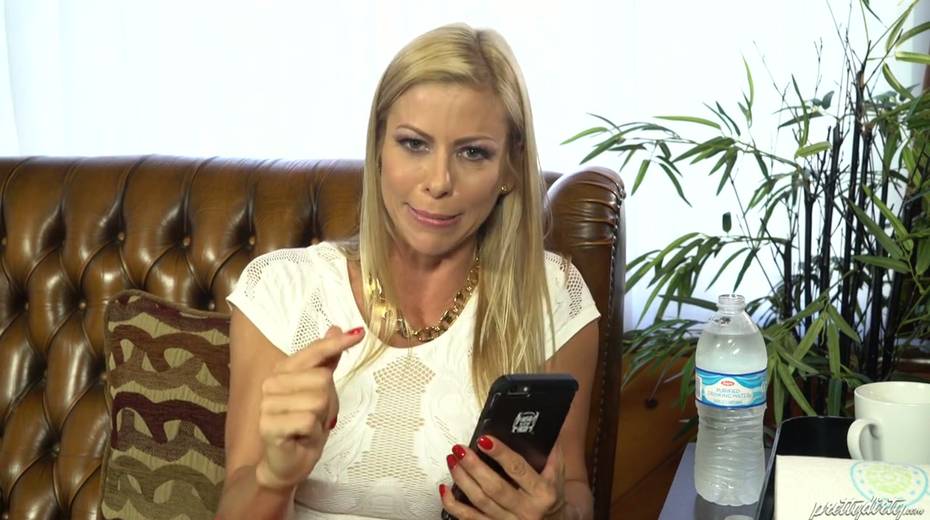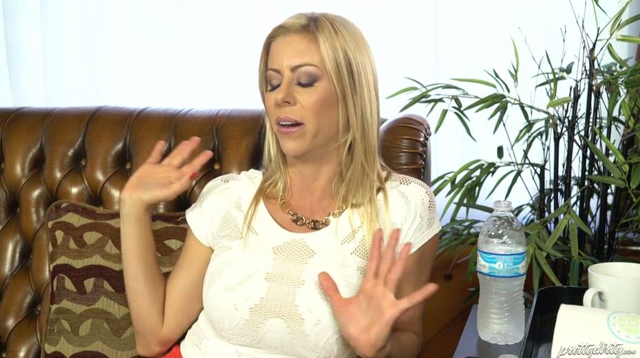 Blonde with juicy boobs Elsa Jean gives an interview after hot porn scene