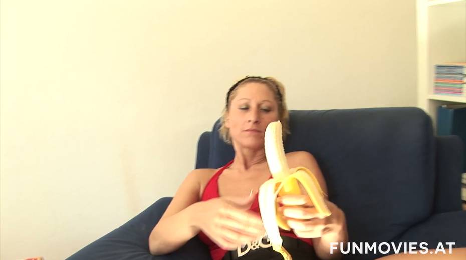 Kinky blonde Teresa Lynn fucks herself with the help of banana