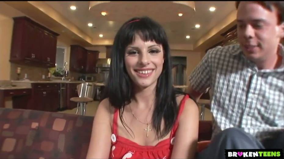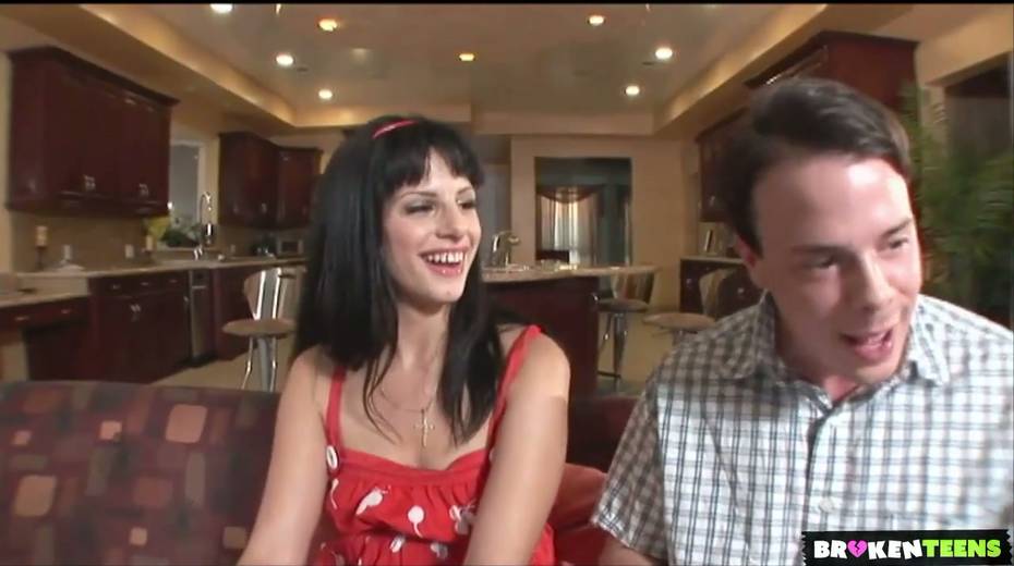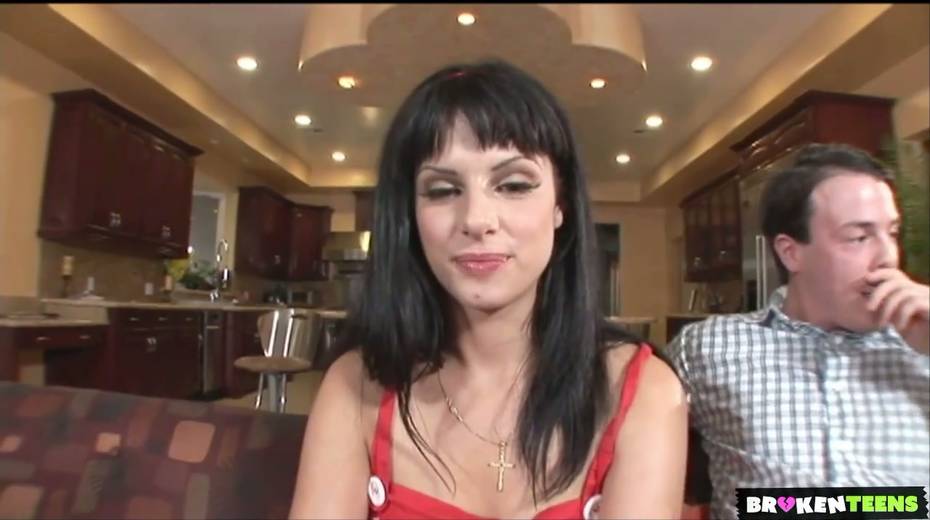 Flat chested brunette Lola Banks is riding hard penis reverse