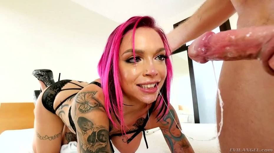 Pink haired emo whore Anna Bell Peaks guzzles dick like a professional sword swallower