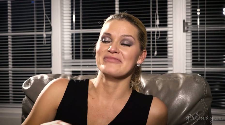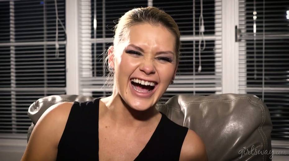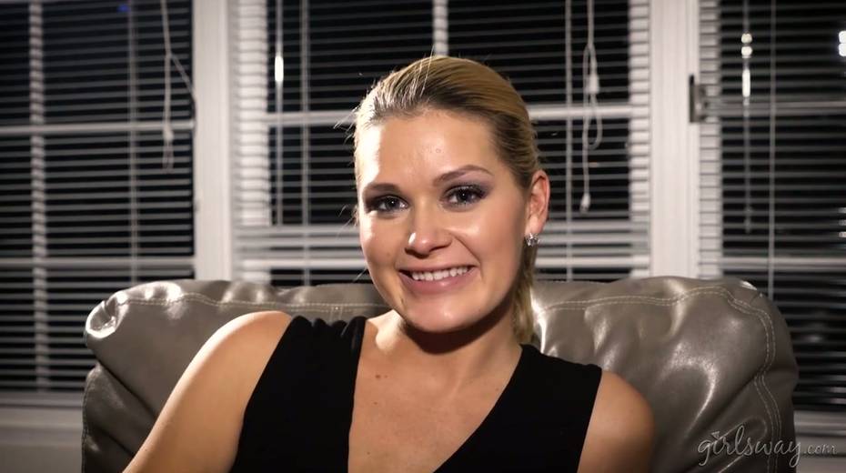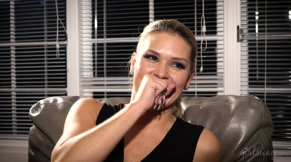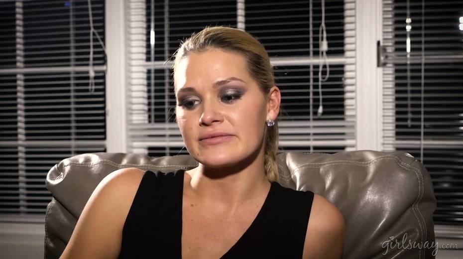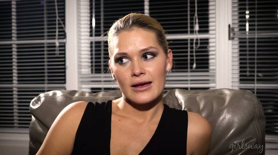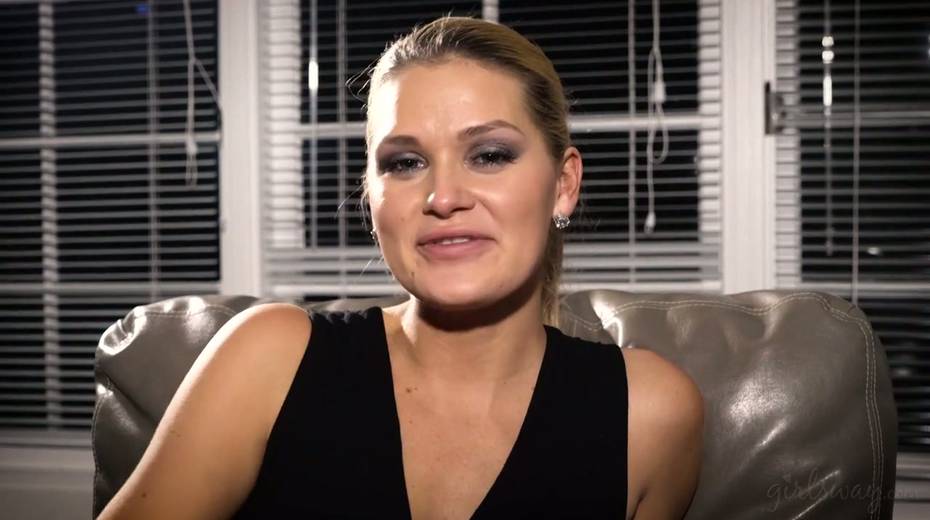 Hottie Abby Cross gives an interview after taking a part in hot lesbian scene