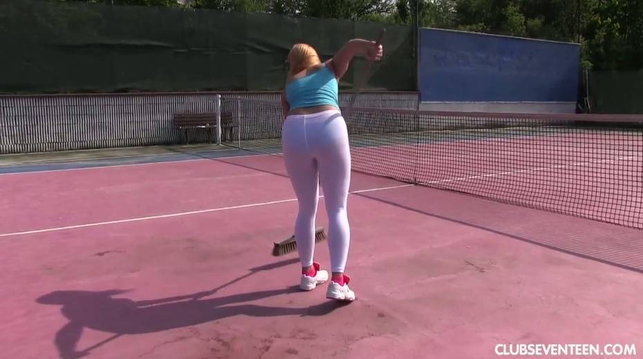 Young and beautiful babe Chrissy Fox enjoys fucking herself on the tennis court