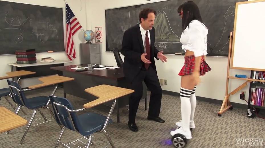 Whorish college chick riding gyroscooter Luna Star is fucked by one kinky teacher