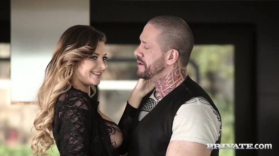 Two well endowed dudes fuck sizzling hottie in sexy lingerie Anna Polina