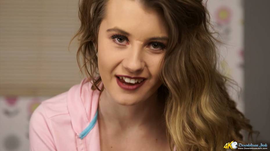 Oversexed babe in blouse Brook Logan shows off her juicy boobies