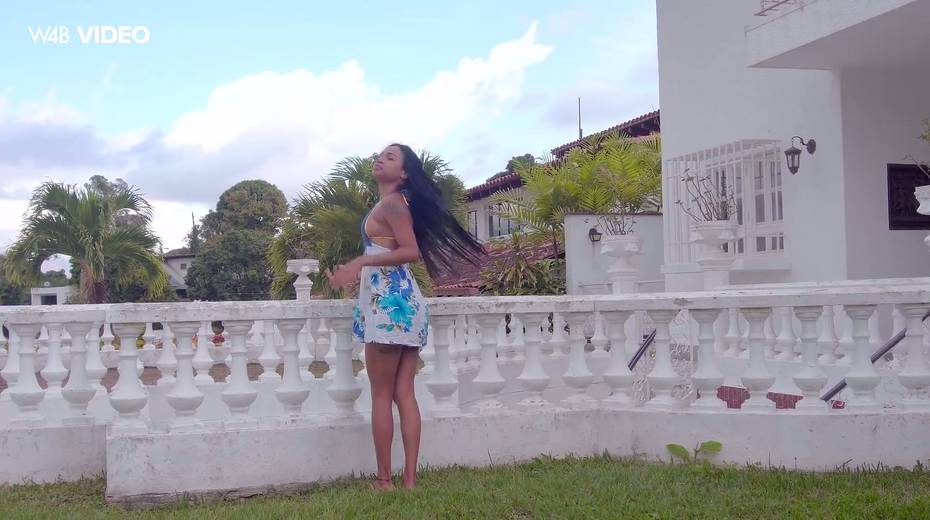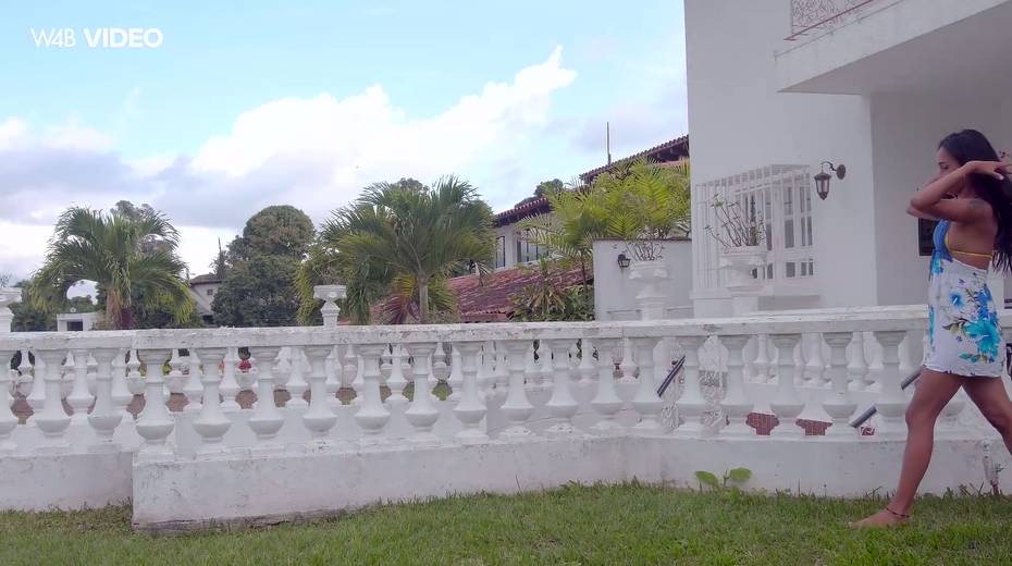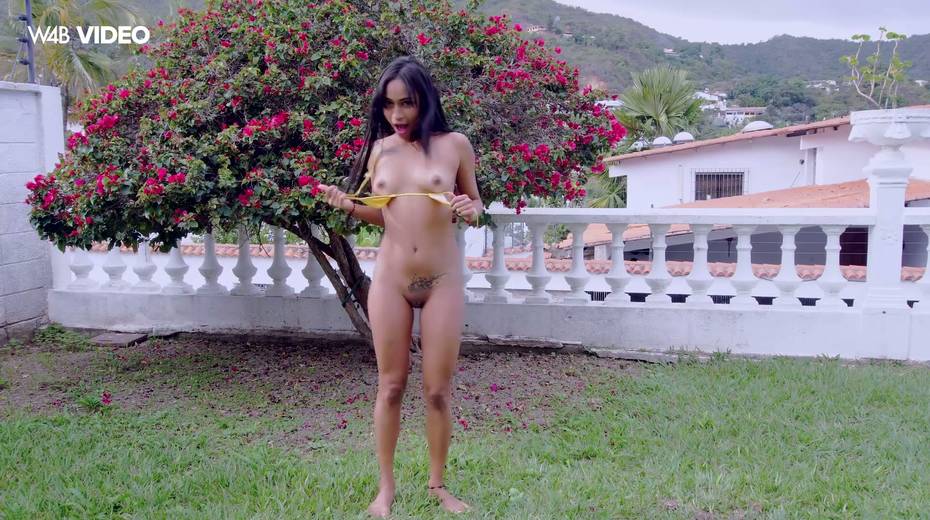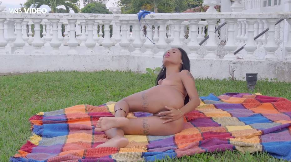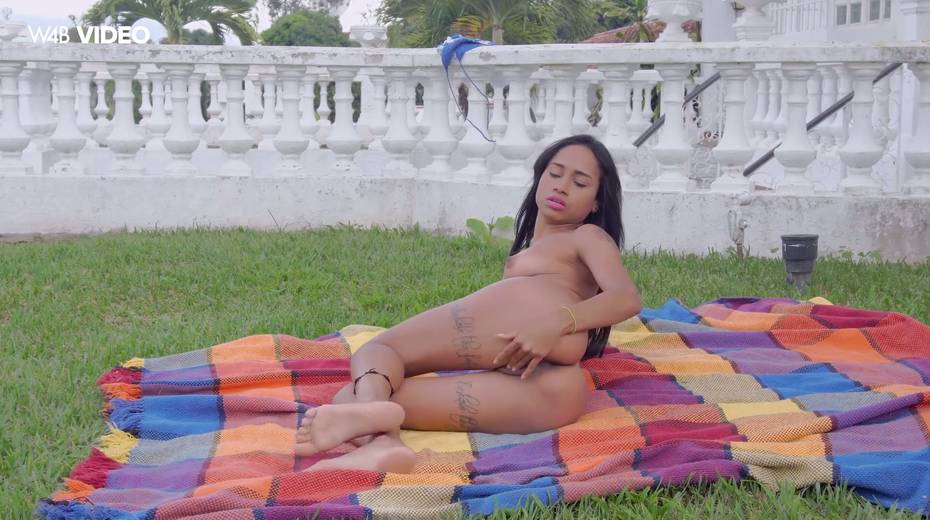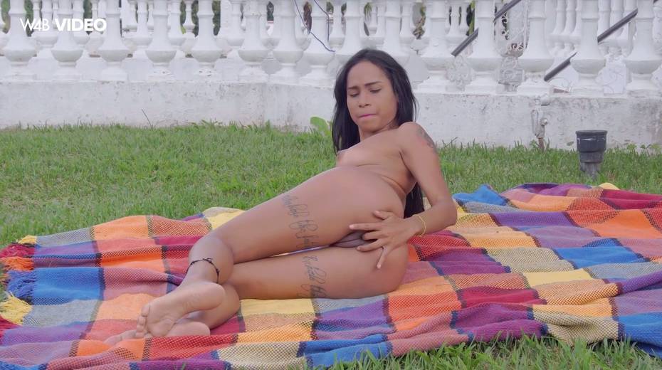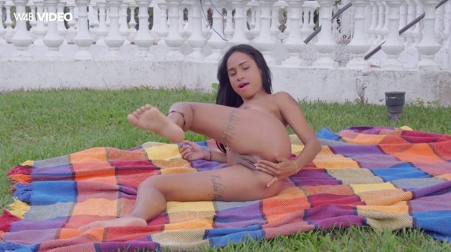 Kinky babe with petite body Sofia Suarez is fingering pussy outdoor