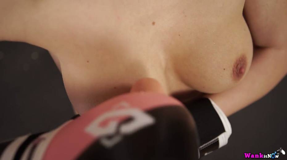 Bitch in boxing gloves Tina Kay sucks hard penis and jerks off it
