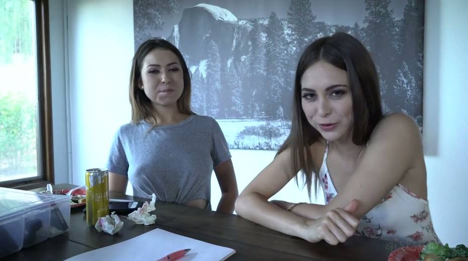 Beautiful hottie Riley Reid gives and interview after passionate girl on girl scene