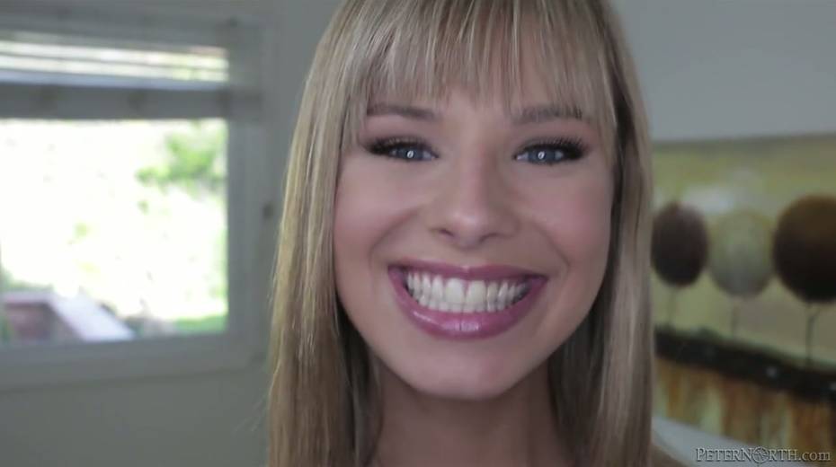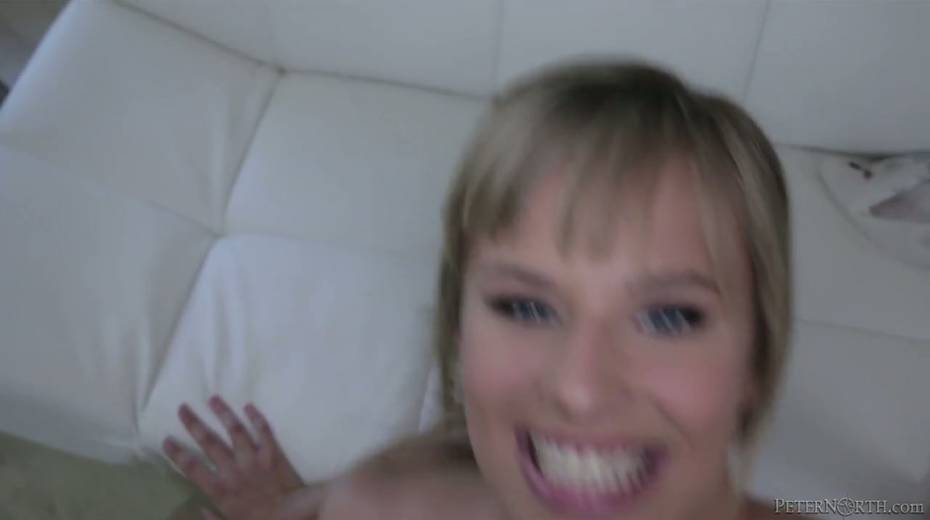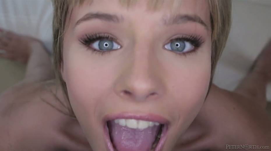 Blue eyed blonde Jillian Janson shows her pinkish pussy