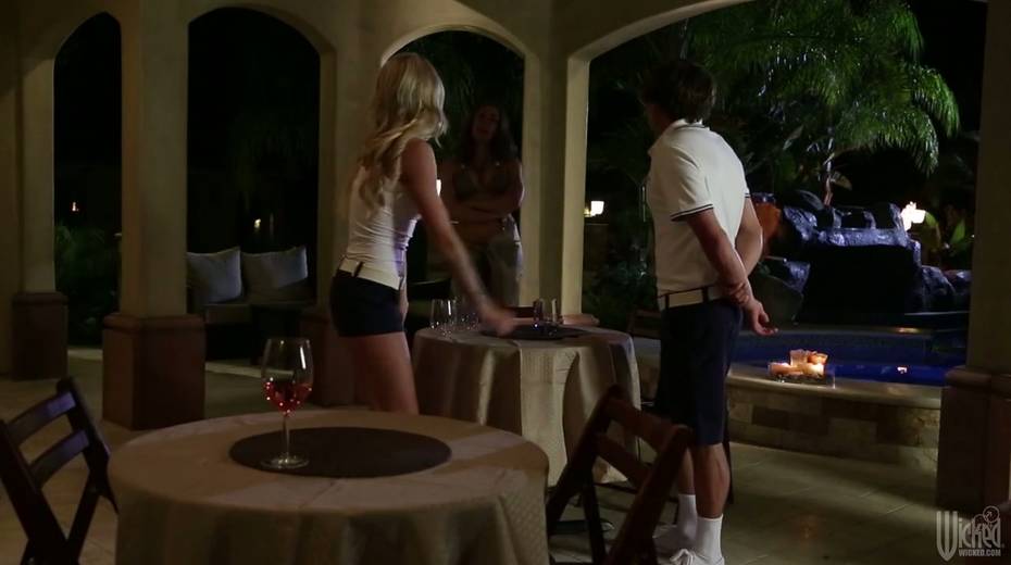Alluring bitch Jessa Rhodes and her kinky busty GF are fucked by horny stud