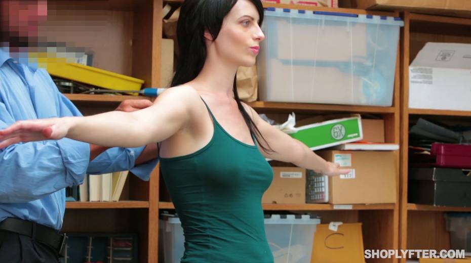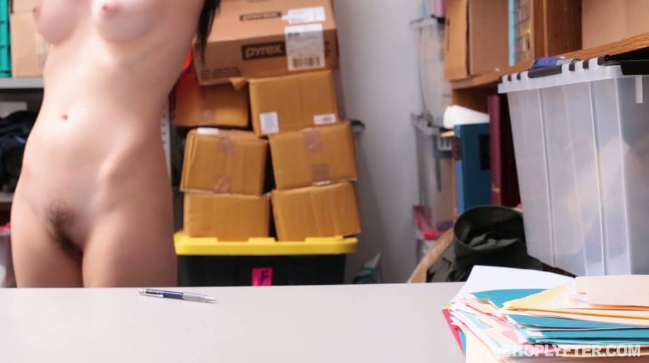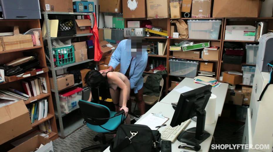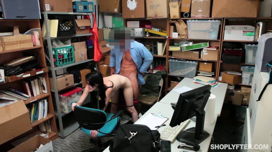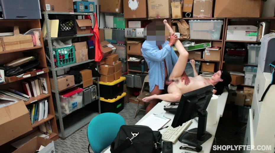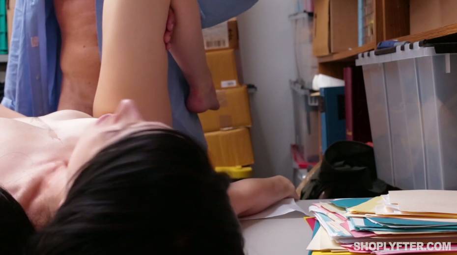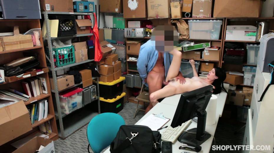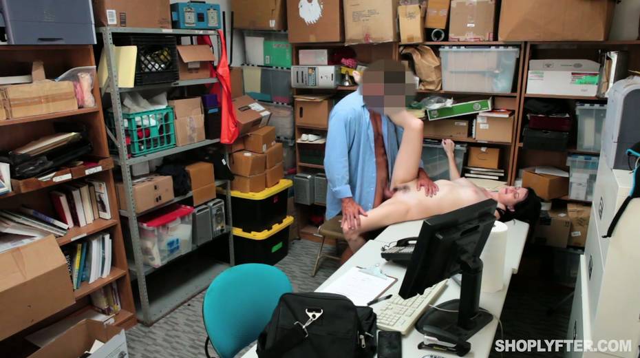 Shoplifter Alex Harper is fucked hard by horny dude right on the table