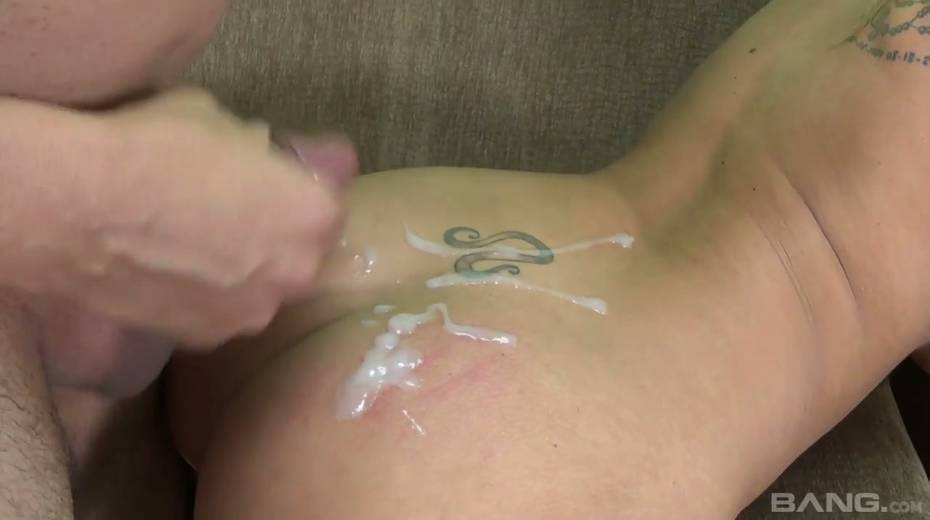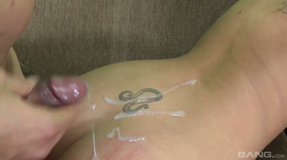 Lecherous blonde with big assets Olivia Austin takes cum on her tattooed ass