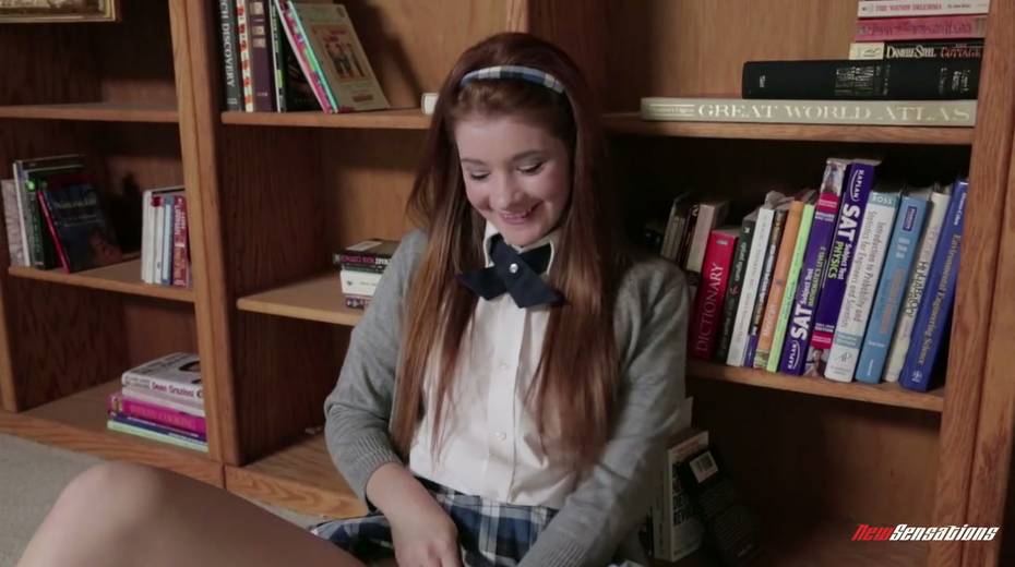 Cute college babe Ava Sparxxx is masturbating her slit in the library