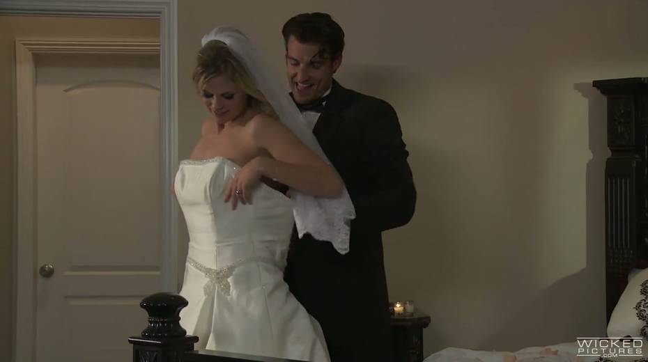 Beautiful bride Scarlet Red sucks dick and gets fucked