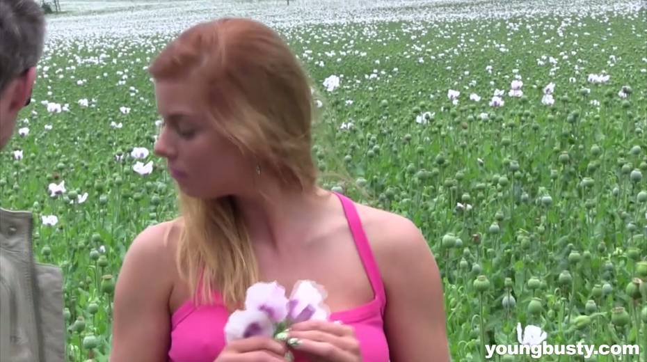 Young busty Chrissy Fox takes hard penis in her muff and mouth in the field